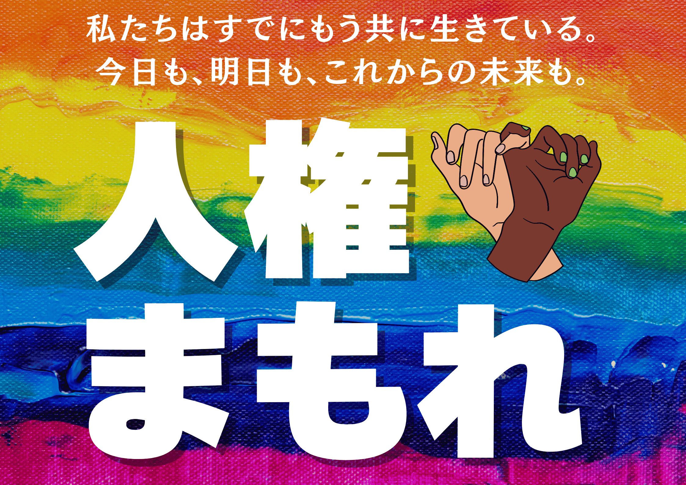 「人権」の文字の横には小指を繋ぎ合う2人の手のイラスト。 - 印刷して使用できますか?