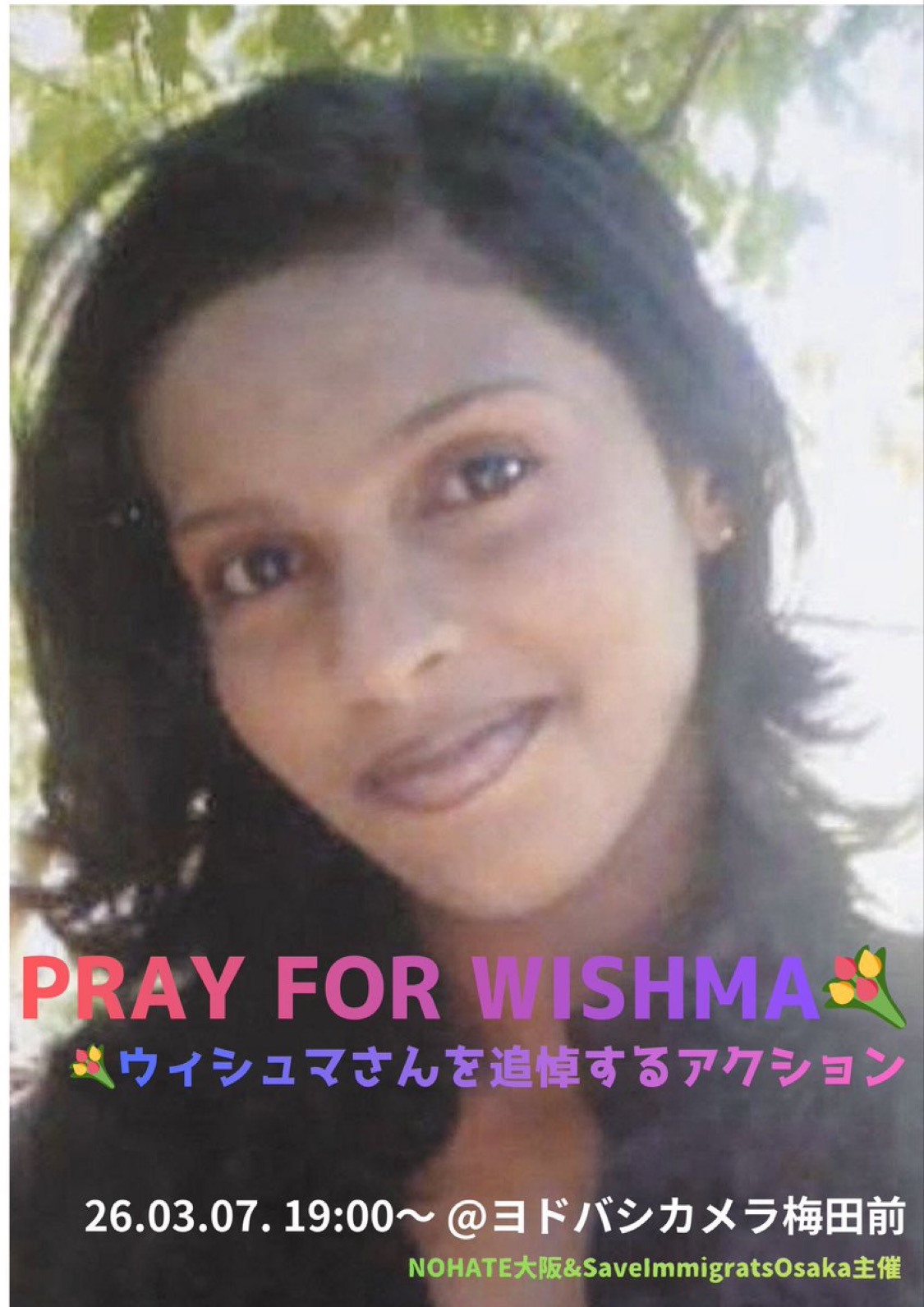 3.6でウィシュマさんが名古屋入管で亡くなられて丸5年となりSaveImmigrantsOsakaでは3.7に追悼を行い、また2025年以降高市政権化で行われている「不法滞在ゼロプラン」や排外主義に対して抗議をし、大阪NOHATEと一緒にスタンディングアクションを行います。